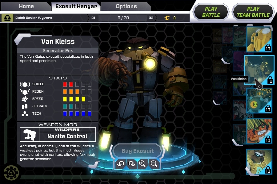 上面的Exosuit Hangar分頁是讓你預覽、購買和更換裝甲的地方。